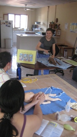 For the last year, Kathryn Taylor (Ohio State B.S. ’12; Harvard M.D. ’17) has been training Shoulder to Shoulder’s physicians, nurses, and local midwives how to save babies’ lives. Based at our Santa Lucia clinic, Kathryn has trained and evaluated our staff for basic neonatal resuscitation techniques as part of a study of Helping Babies Breathe, a joint program of the WHO, Save the Children, and the American Academy of Pediatrics. She teaches a curriculum designed for developing countries in limited resource environments.